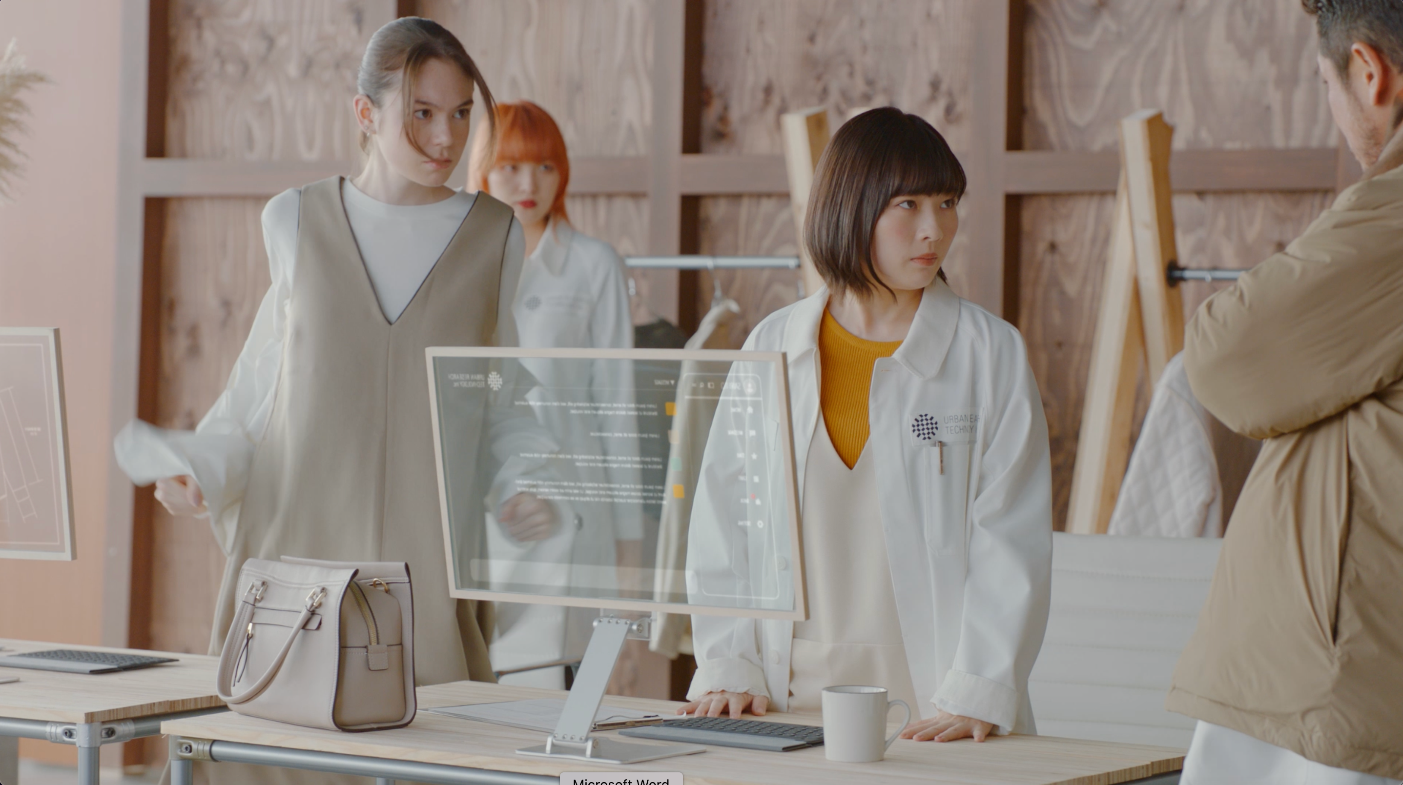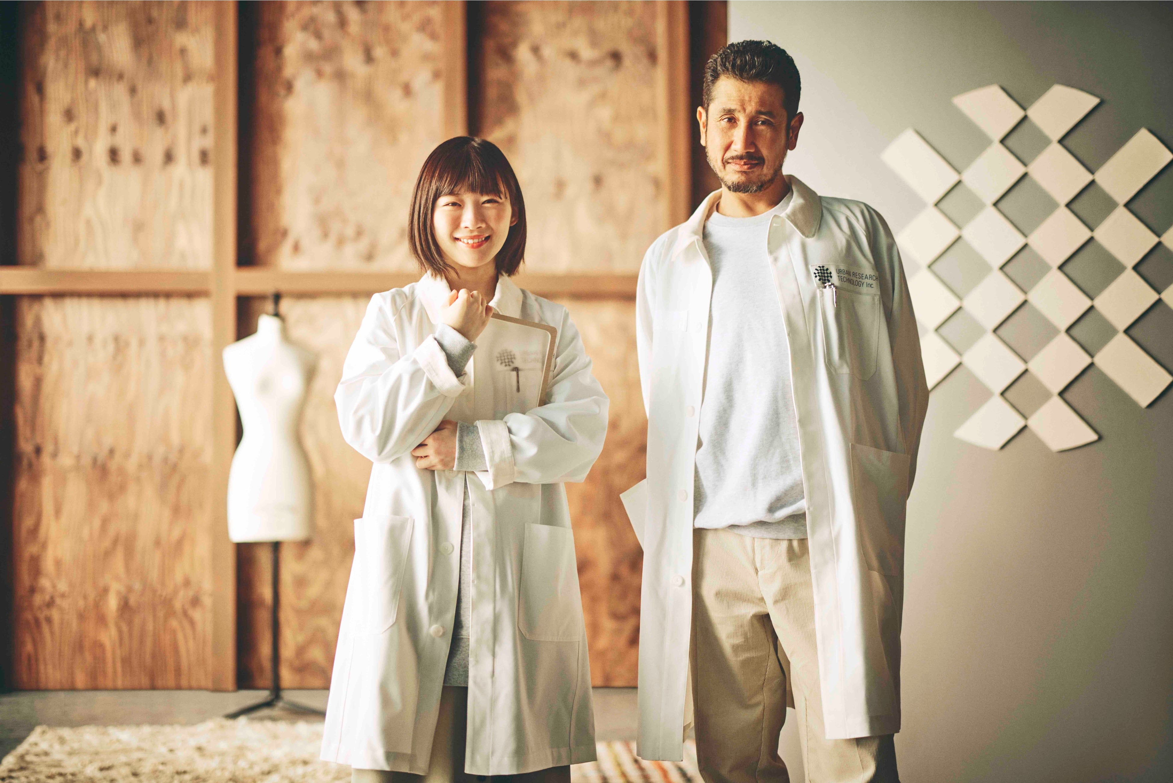 機能性素材UR TECHを研究・開発・調査をしている、日本のどこかにあると言われている会社、「URBAN RESEARCH TECHNOLOGY Inc.」。そこに所属している優秀な研究員・伊藤 沙莉と、所長・渋川清彦は、日々熱心に、ときにコミカルにブレストを重ねることで、快適な着心地だけでなく、ファッション性を追求している。