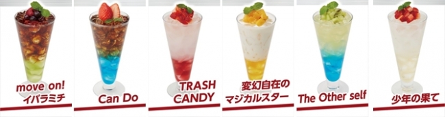 NEWシングルの『move on! イバラミチ』と人気楽曲「Can Do」「TRASH CANDY」「変幻自在のマジカルスター」「The Other self」「少年の果て」をイメージしたコラボドリンク ※全6種・ノンアルコール各680円(全て税別)