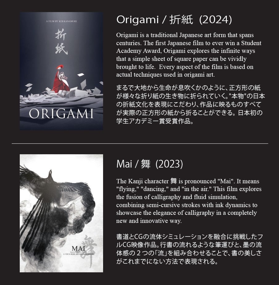 ※3:放映するのは2作品。銀賞受賞作品である「Origami / 折紙」 と同氏制作の「舞 | 書道 × 流体シ