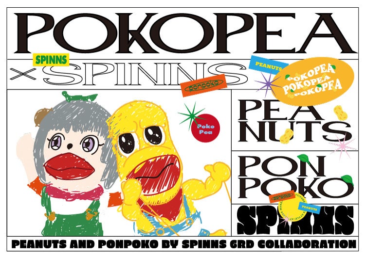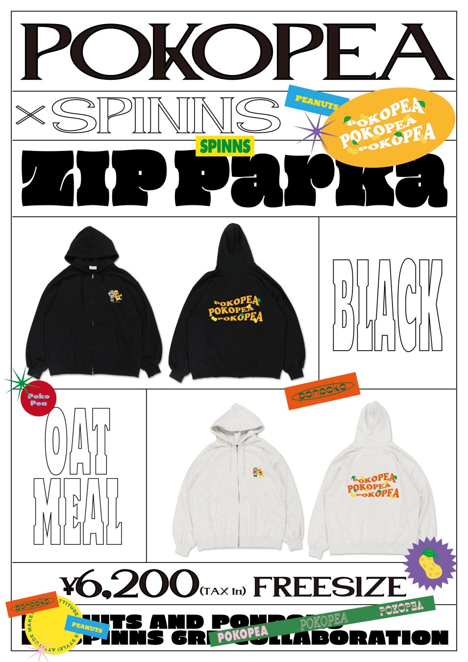 今回のコラボレーションアイテムは「ZIPパーカー」。フロントは刺しゅうの手描き風ぽこピーイラストをスピンズが描き起こしました。また、コラボレーションアイテム第5弾も、第6弾と同時期に再販する。
