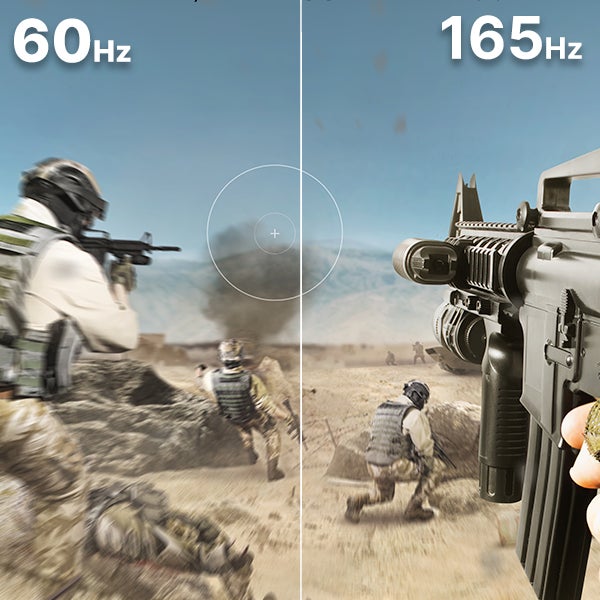 165Hzのリフレッシュレートは一般的な60フレームのモニターと比べて目の疲れが軽減され、 ゲーム内においても圧倒的な違いを体験できます。