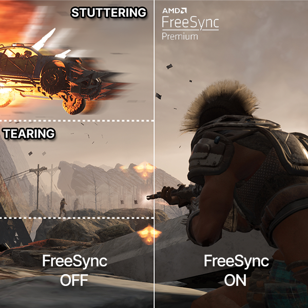 AMD FreeSync技術によりティアリングや残像の全くないスムーズなゲームプレイを実現しました。