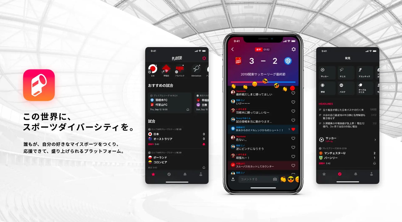 Player!は、誰もが、自分の好きなマイスポーツをつくり、応援できて、盛り上げられるプラットフォームです。