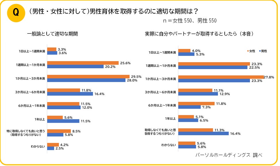 ◆適切な育休期間、男性は建前と本音の差が大きい