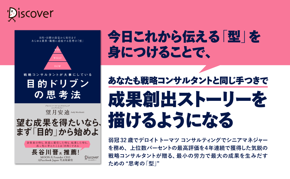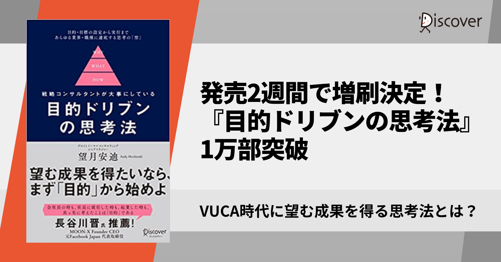 株式会社ディスカヴァー・トゥエンティワン(本社:東京都千代田区、取締役社長:谷口奈緒美)は2022年3月25日刊行の『目的ドリブンの思考法』(望月安迪・著)を増刷し、1万部を突破しました。