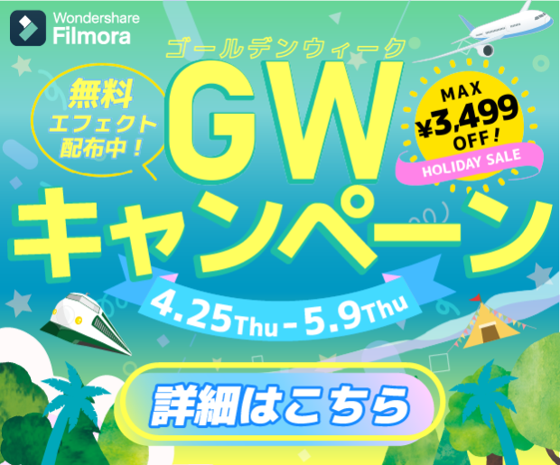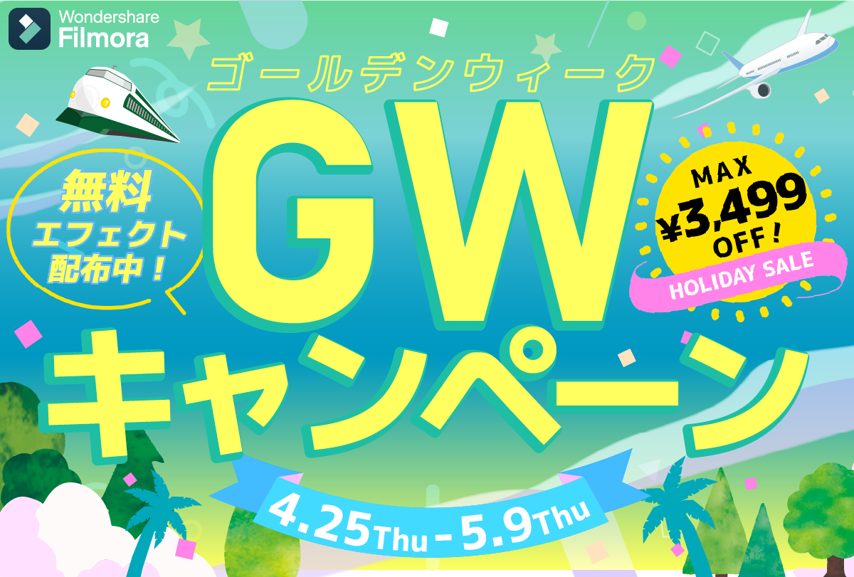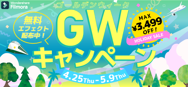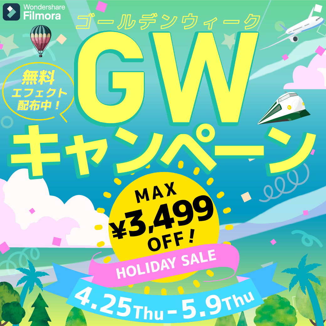 【最大3,499円オフ】GWキャンペーン実施中!|Wondershare Filmora(フィモーラ)