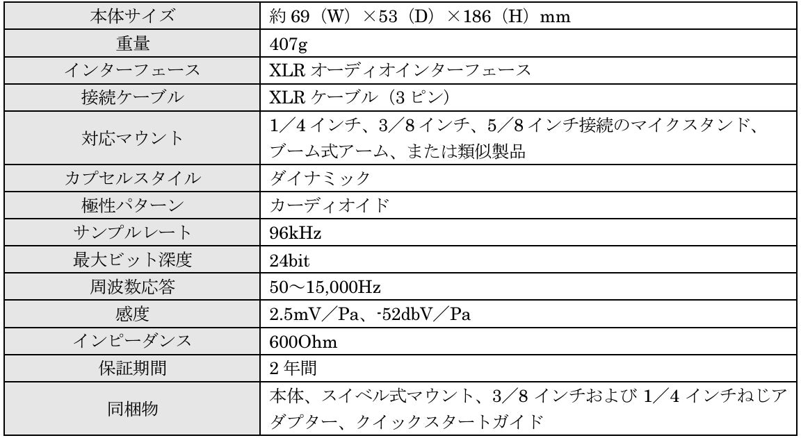 ・多くのXLRプリアンプ、またはオーディオインターフェースに対応