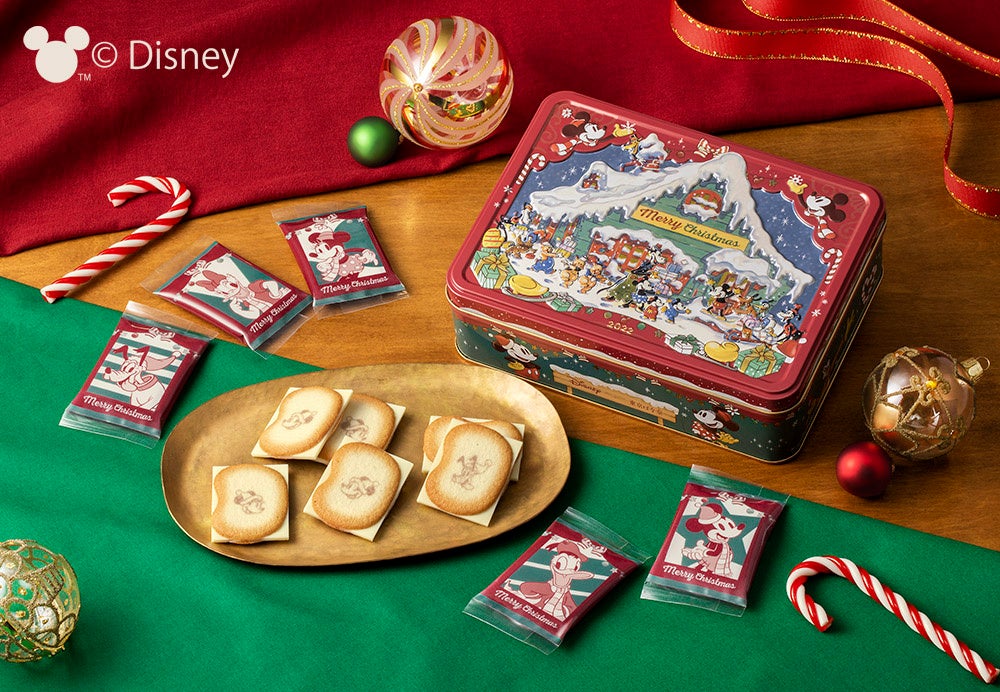 最新作は『ミッキー&フレンズ<クリスマス>/ショコラサンド「見ぃつけたっ」』。ぷっくりとしたイラストがクリスマスムード満載のスペシャル缶に入っています。クリスマスらしい優しいタッチのイラストがとってもキュート!暖かいお部屋で、みんなそろってクリスマスパーティーをするのかな?何だかにぎやかな笑い声が聞こえてきそうな雰囲気です。中のお菓子を食べ終わったあともおうちに飾ったり小物入れにしたりと色々楽しめます。
