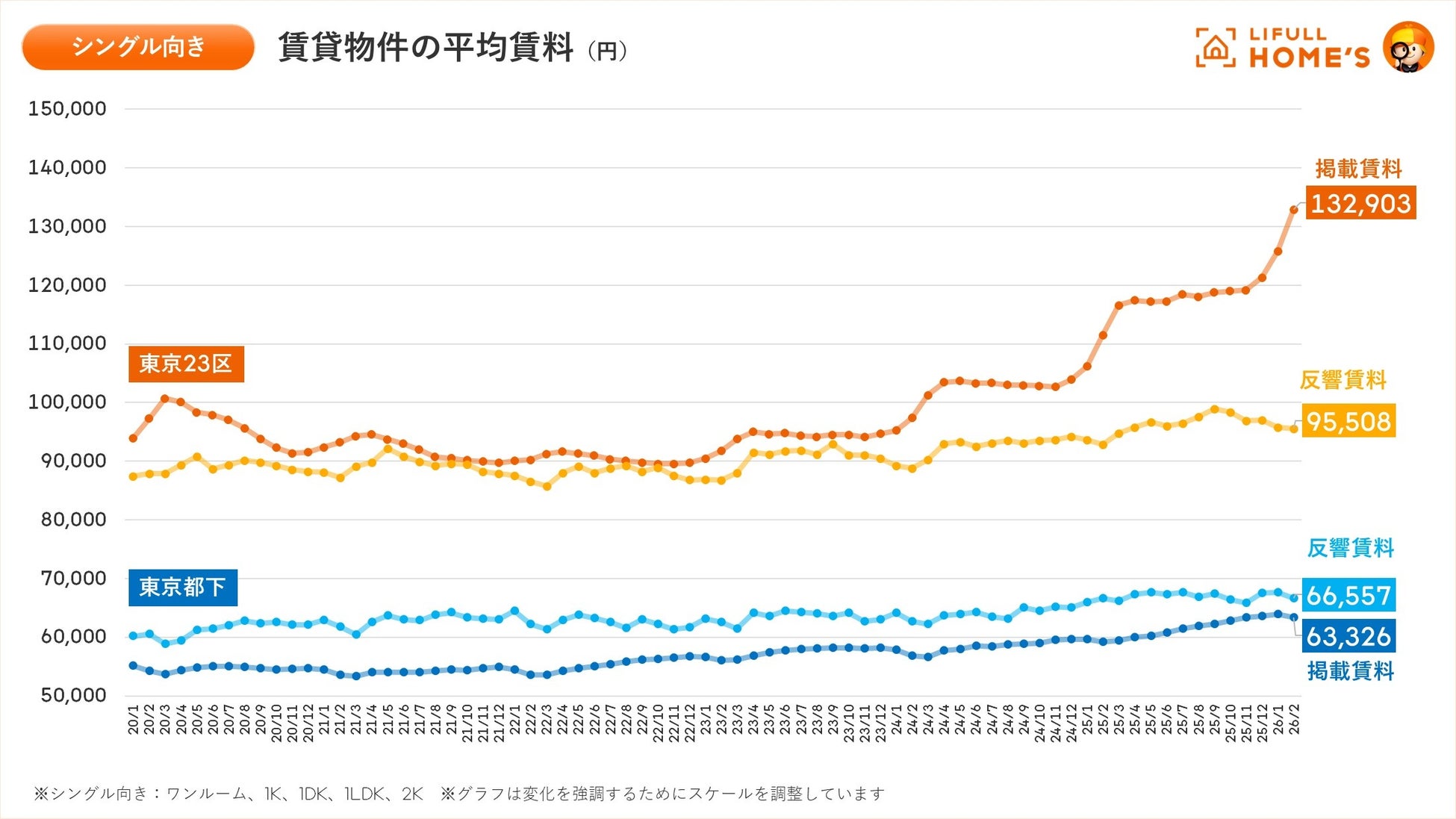 事業を通して社会課題解決に取り組む、株式会社LIFULL(本社:東京都千代田区、代表取締役社長:伊東祐司、東証プライム:2120)が運営する、不動産・住宅情報サービス「LIFULL HOME'S(ライフルホームズ)」は、「LIFULL HOME'Sマーケットレポート 2026年2月(賃料動向)」を公開しました。