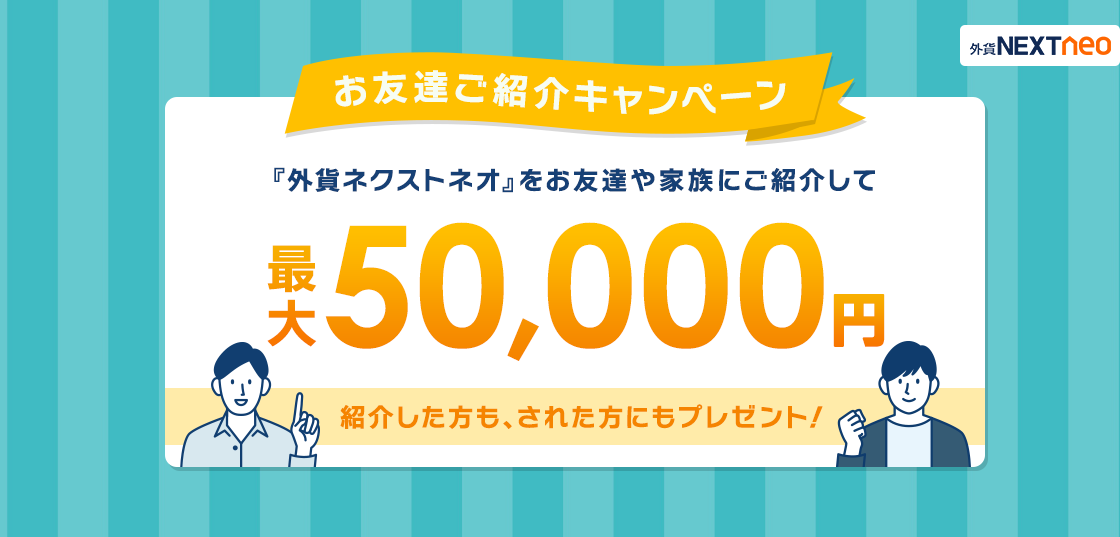 株式会社外為どっとコム(本社:東京都港区、代表取締役社長:竹内 淳)は、店頭FX『外貨ネクストネオ』にて、「お友達ご紹介キャンペーン」を2026年2月2日(月)より実施します。