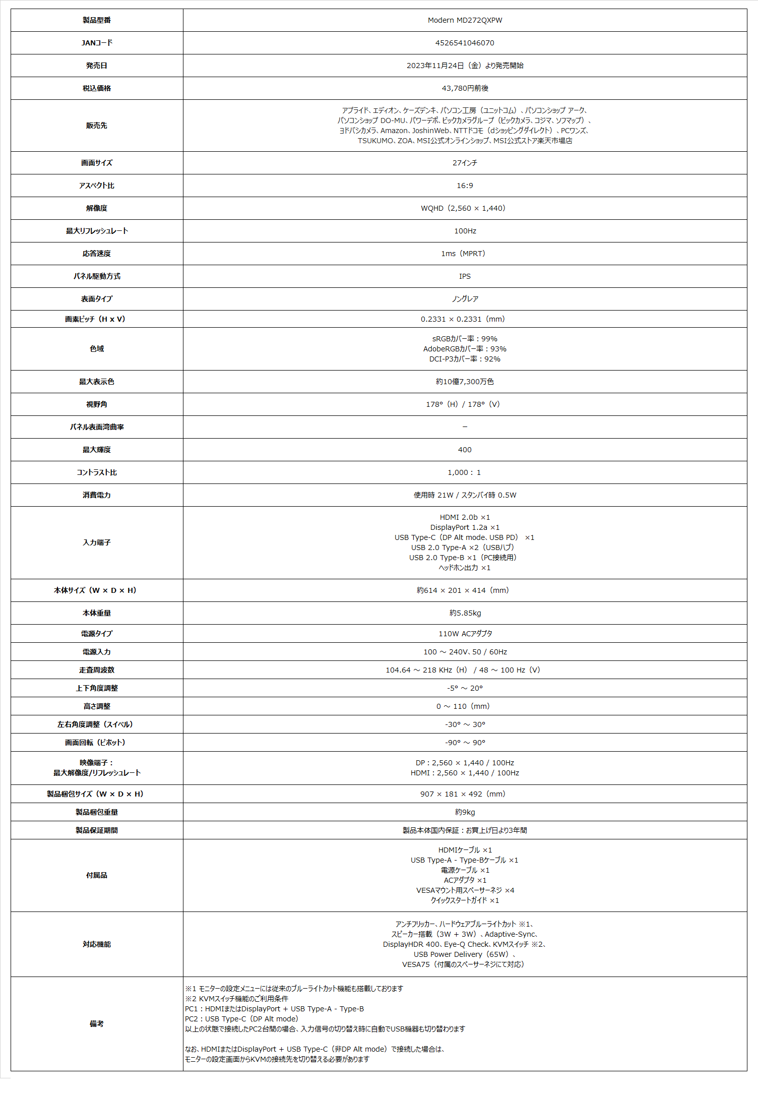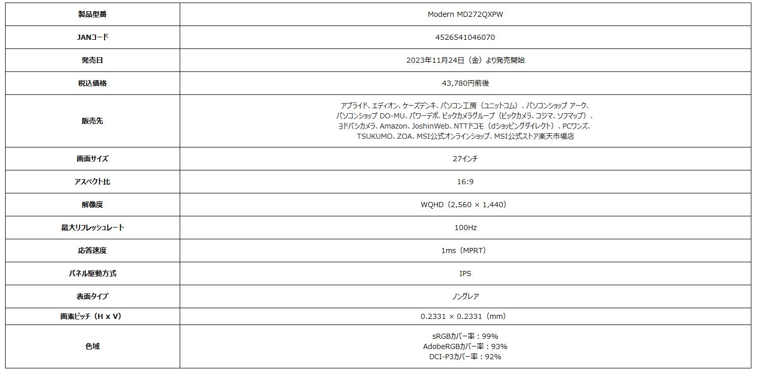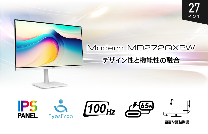 製品ページ:https://jp.msi.com/Business-Productivity-Monitor/Modern-MD272QXPW