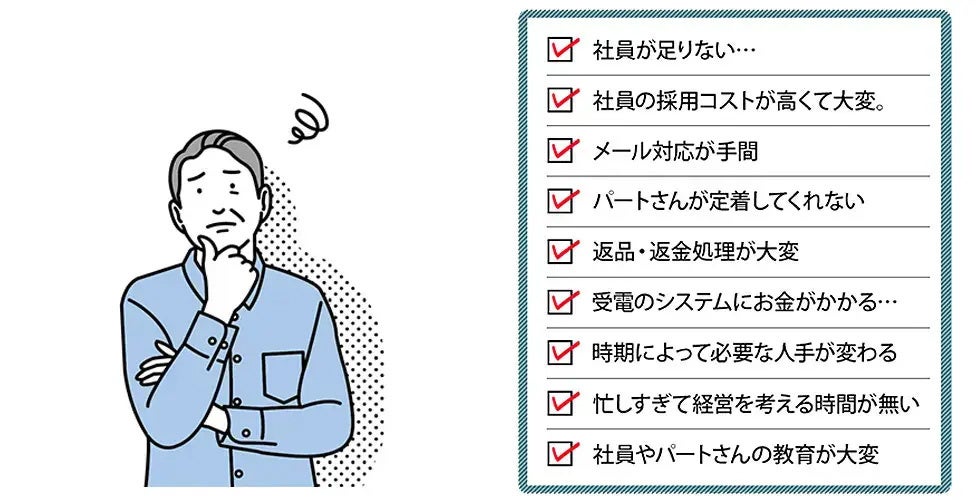 カスタマーサービスを委託すると高額な費用が掛かってコストに見合わない、だから全て自社で業務を行わないといけない。。。という方も多いのはでないでしょうか。その結果、タスクが多すぎて全て中途半端になっていませんか?