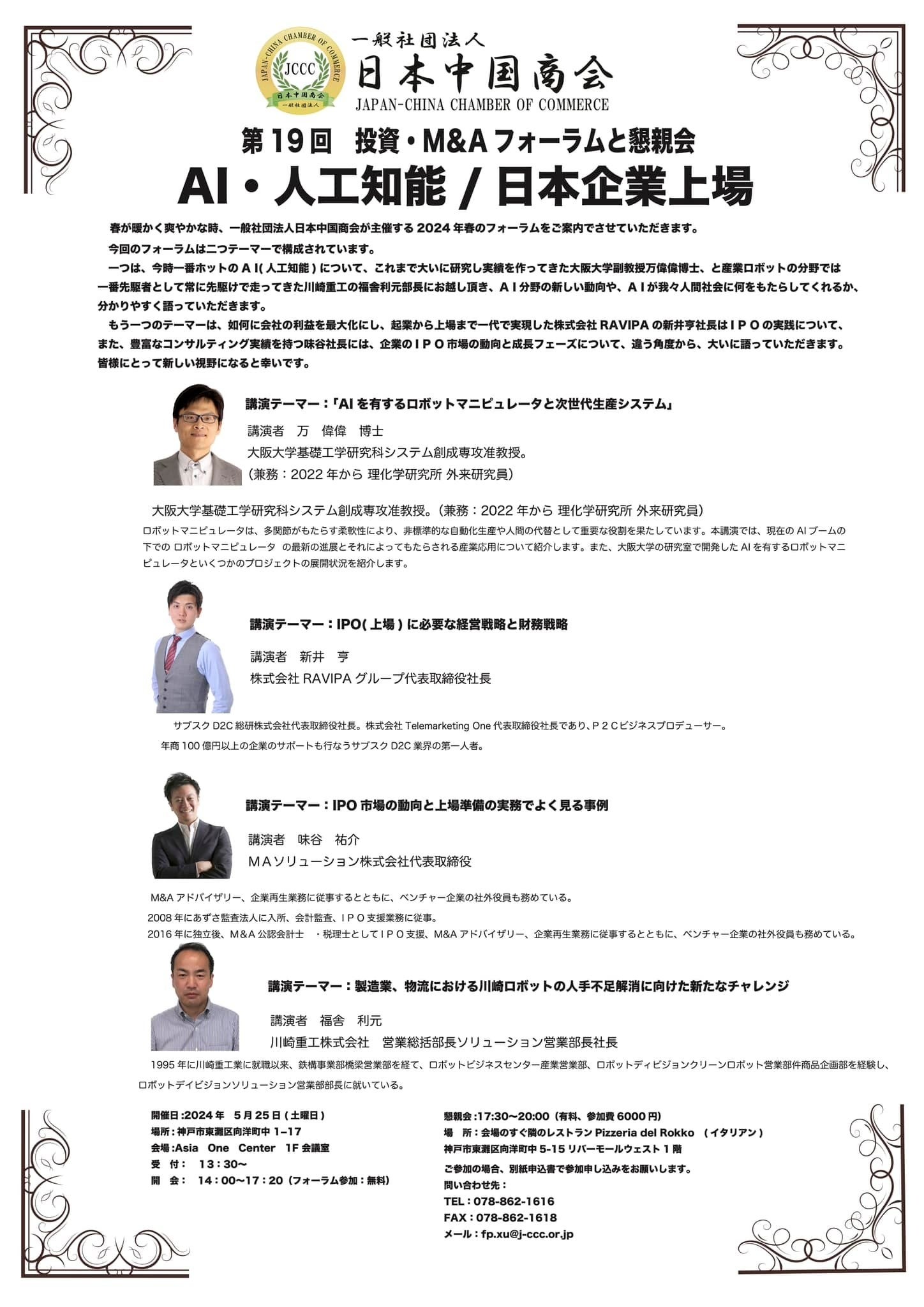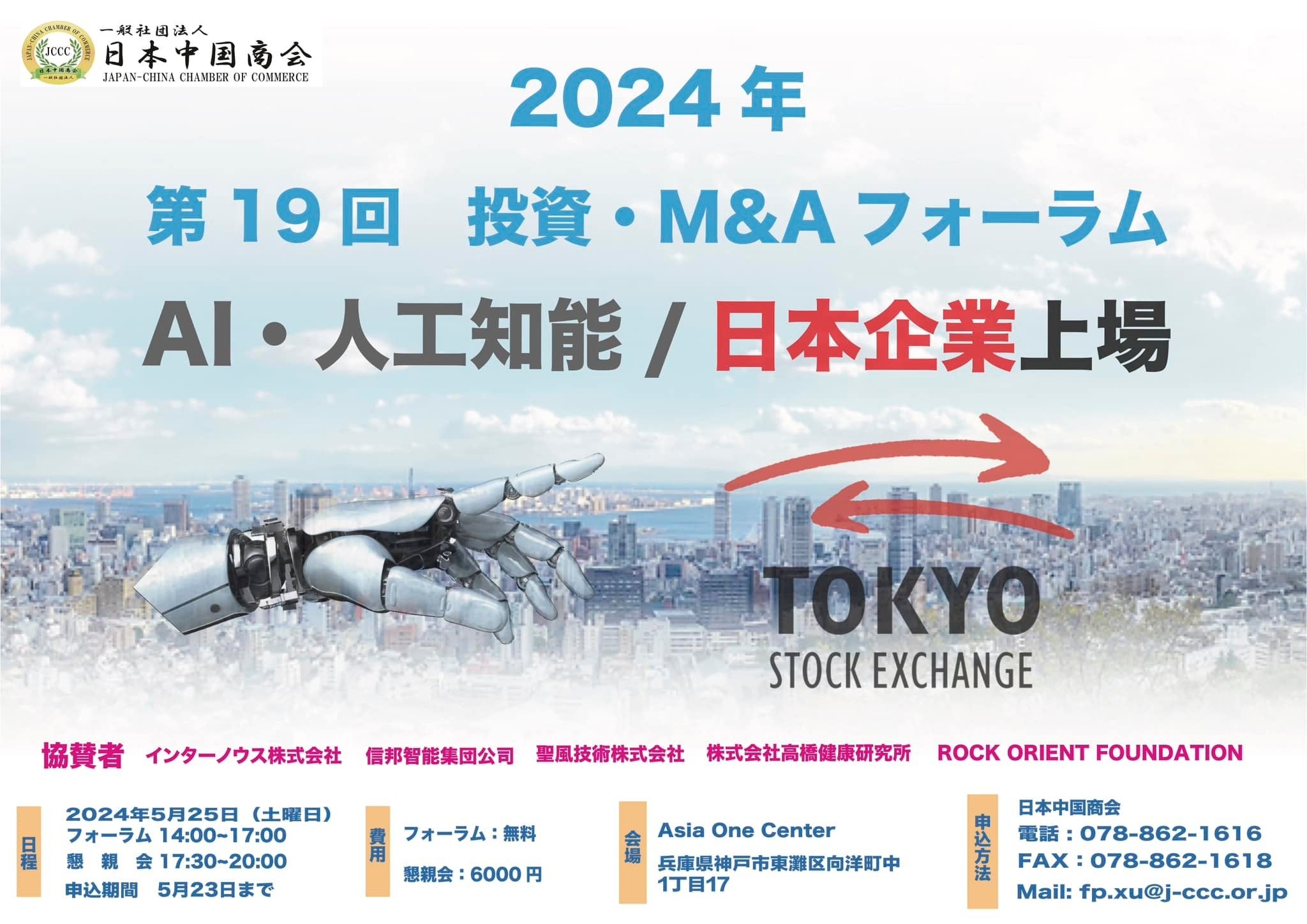一般社団法人日本中国照会主催【第19回投資・M&Aフォーラムと懇親会】に株式会社Telemarketing One代表:新井亨が登壇決定|AI・人工知能・日本企業上場