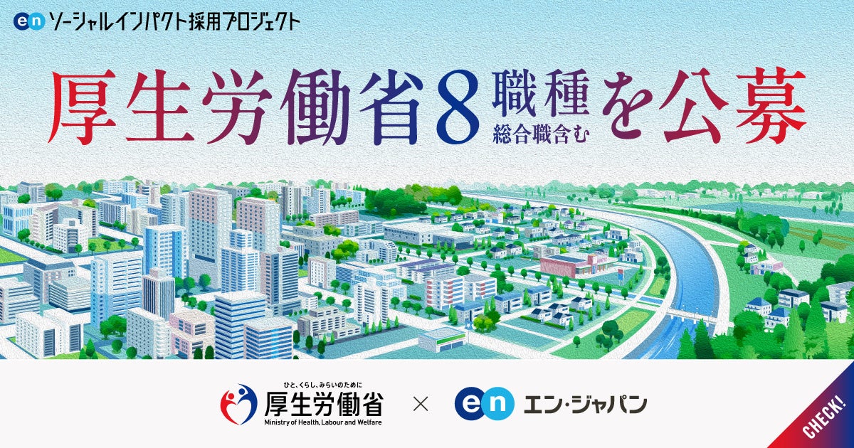 厚生労働省、エン・ジャパンで総合職含む8職種を公募開始!
