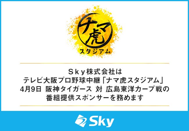 Sky株式会社はテレビ大阪プロ野球中継「ナマ虎スタジアム」4月9日 阪神タイガース 対 広島東洋カープ戦の番組提供スポンサーを務めます