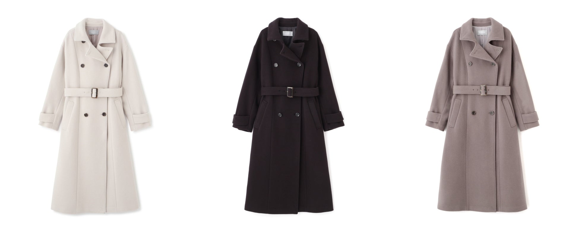 上質で滑らかなメルトン素材を使用。取り外し可能なサッシュベルトはウエストマークだけでなく、ベルト無しでも美しいフォルムがキープできるよう計算されたシルエットが特徴。カラー部分はオープンカラーにすることでデコルテを綺麗に見せつつ、程よい抜け感が叶います。