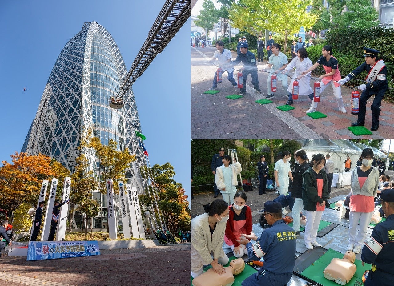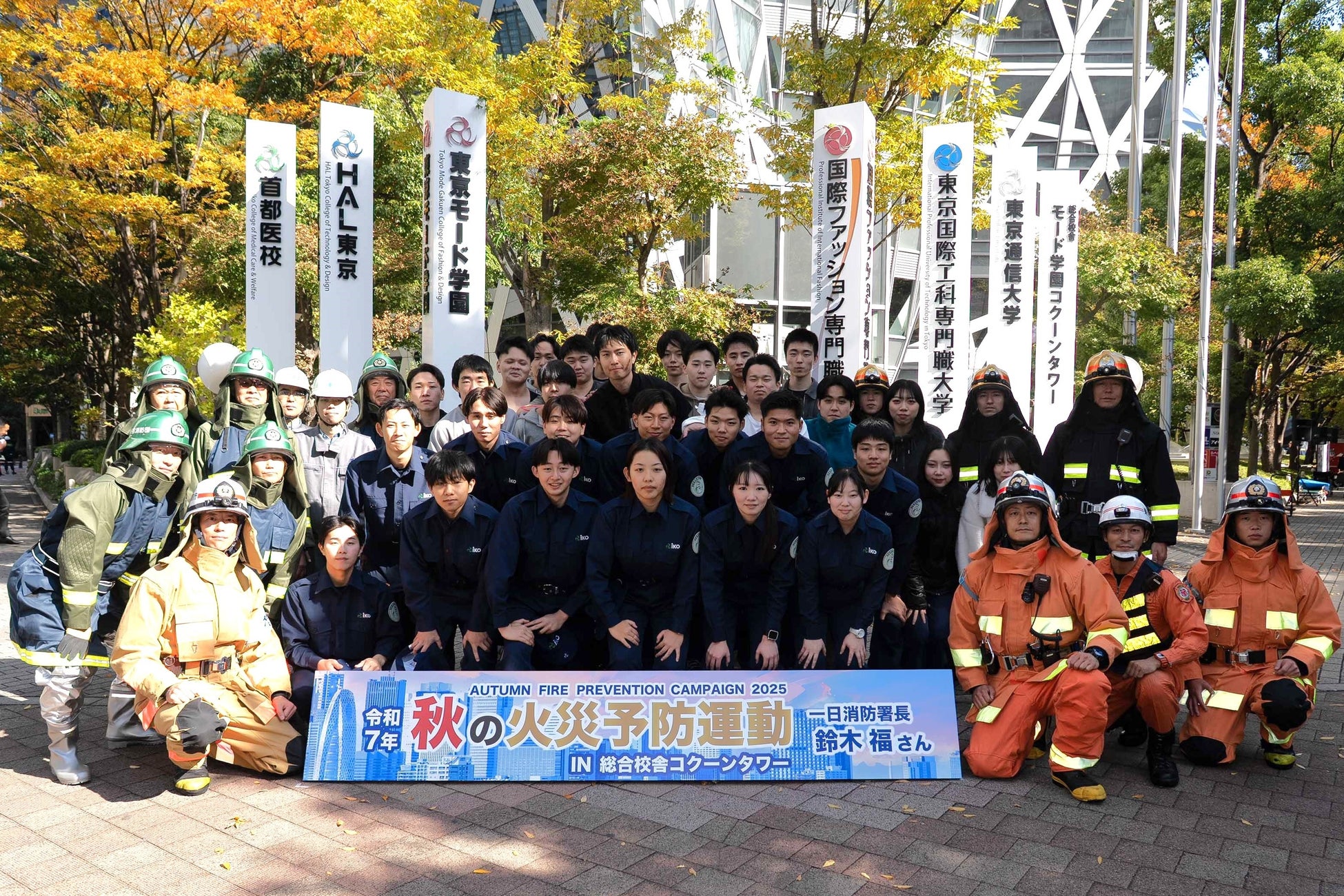 医療の資格取得から就職、給与までを保証する医療・福祉・スポーツの専門学校「首都医校」は、2025年11月7日、東京消防庁の「秋の火災予防運動」に協力し、一日消防署長を務めた俳優の鈴木福さんらとともに、総合校舎コクーンタワーにて防災訓練を実施しました。