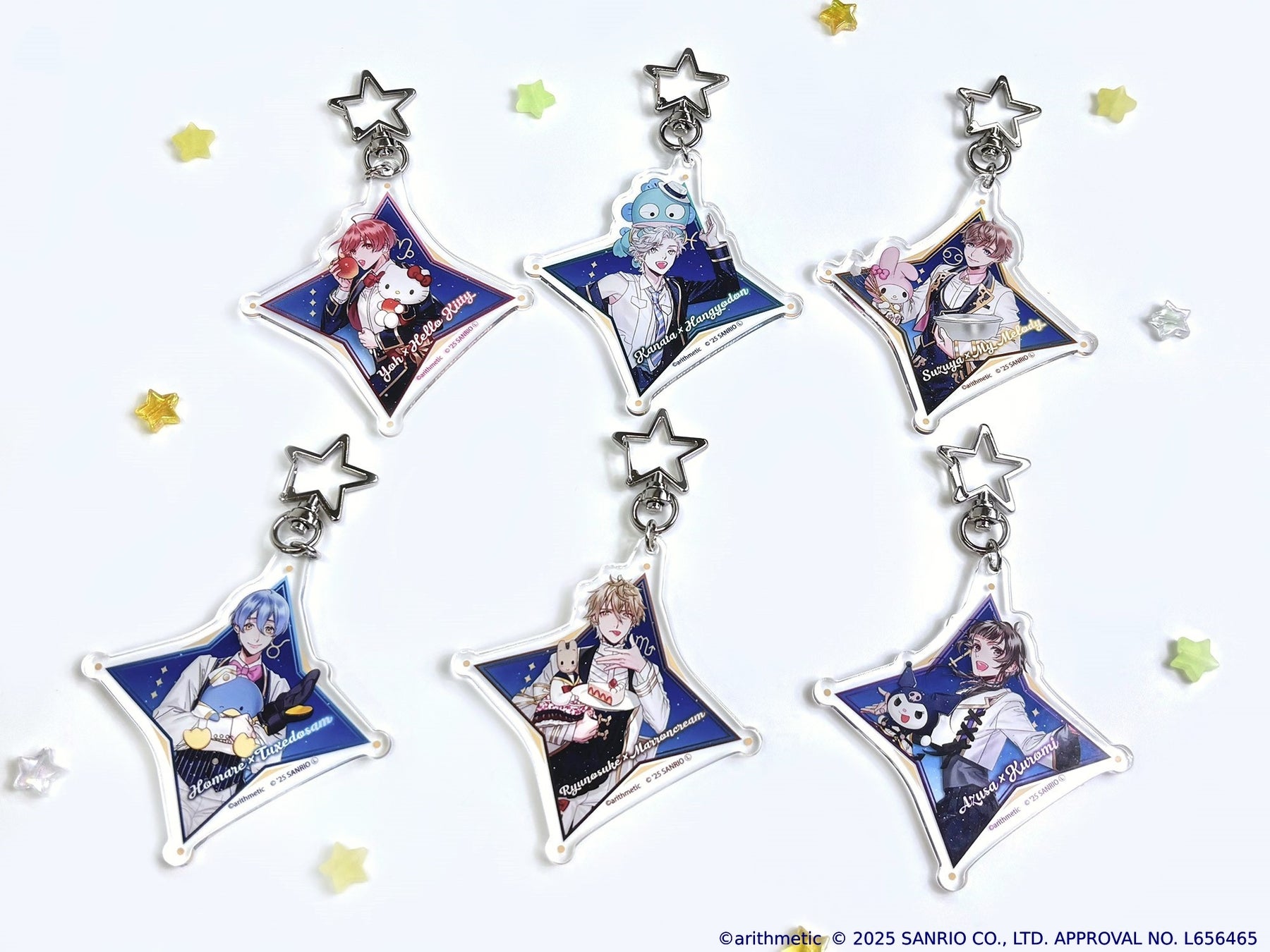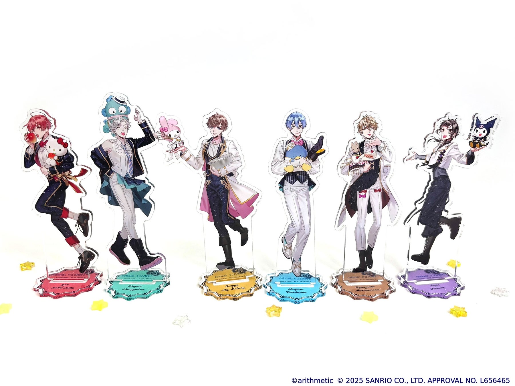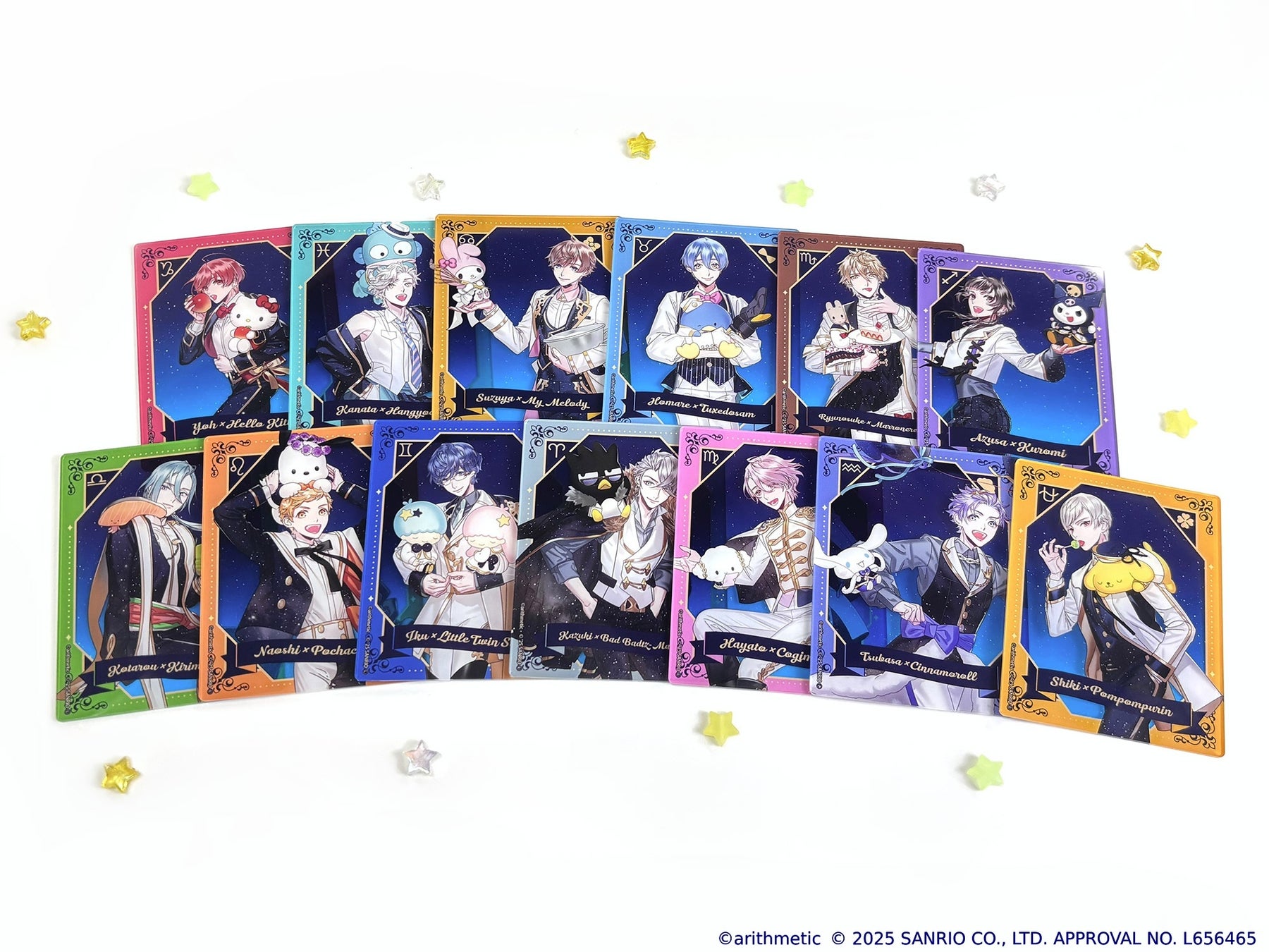 土萌羊×ハローキティ/七海哉太×ハンギョドン/東月錫也×マイメロディ/金久保誉×タキシードサム/宮地龍之介×マロンクリーム/木ノ瀬梓×クロミ/星月琥太郎×KIRIMIちゃん./陽日直獅×ポチャッコ/水嶋郁×リトルツインスターズ/不知火一樹×バッドばつ丸/青空颯斗×こぎみゅん/天羽翼×シナモロール/神楽坂四季×ポムポムプリン