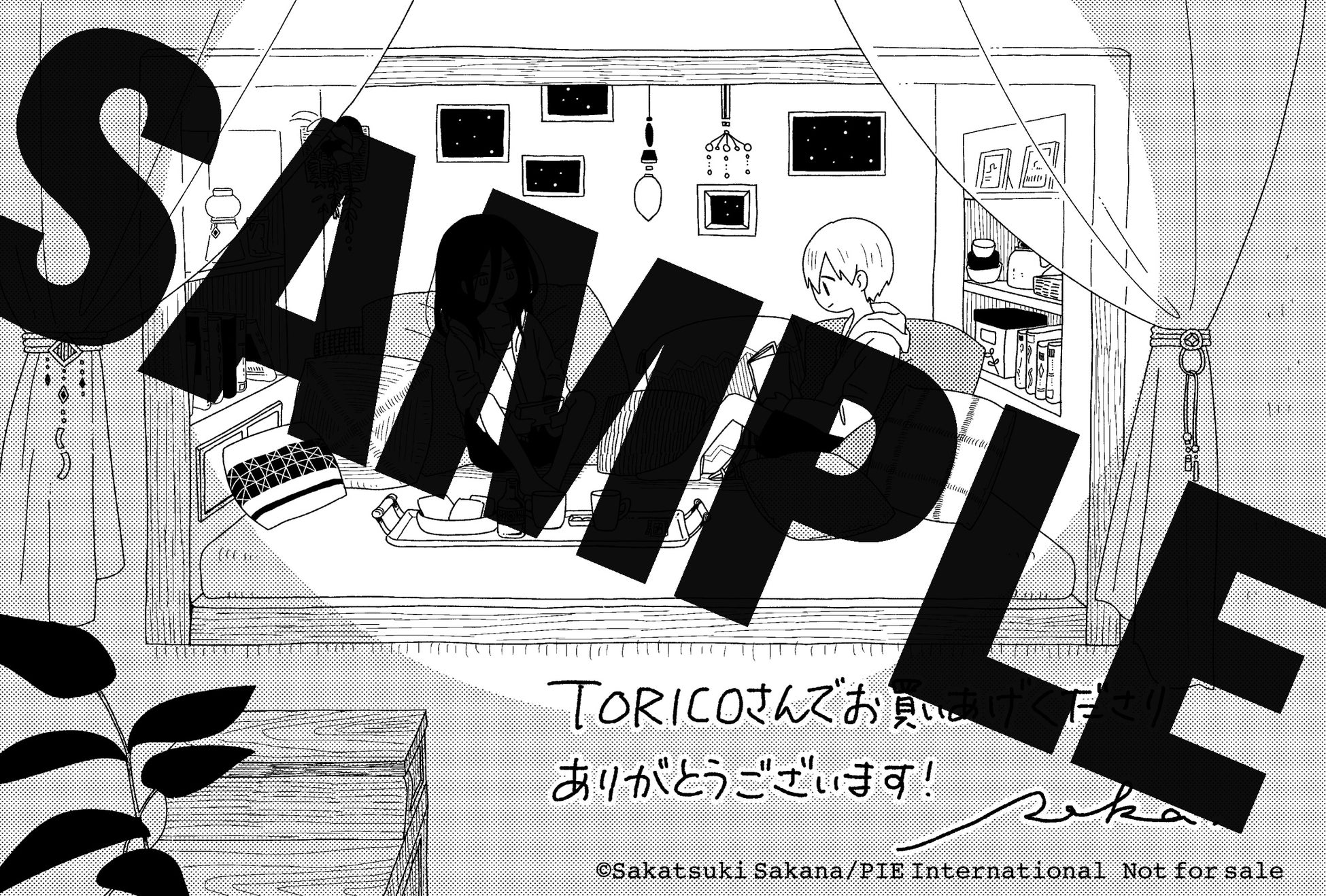 また、TORICO購入特典「描き下ろしモノクロイラストペーパー」付き書籍の販売(お取扱いはWEB通販・マンガ展ストアおよびイベント会場・マンガ展渋谷)もございます。