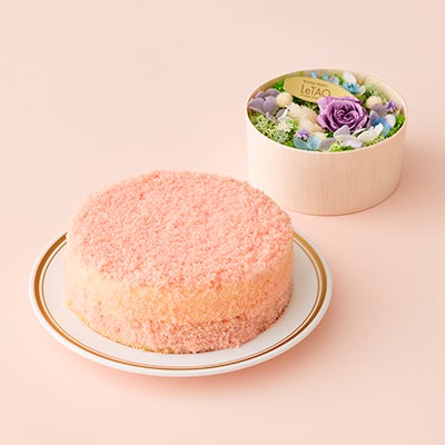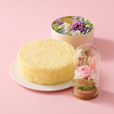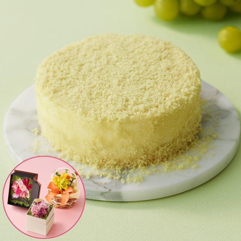 白ブドウ「ナイアガラ」の芳醇な香りが広がるチーズケーキ『ナイアガラドゥーブル』とお花のセット。
