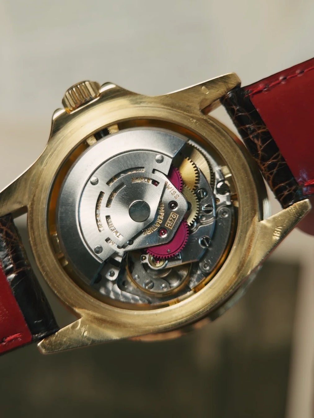 そうした背景の中で、本個体はイギリス向けに特別に発注された個体であり、 サブマリーナのオイスターデイト・ファーストモデルとして、 高い耐久性と精度を誇るCal.1575を搭載している。