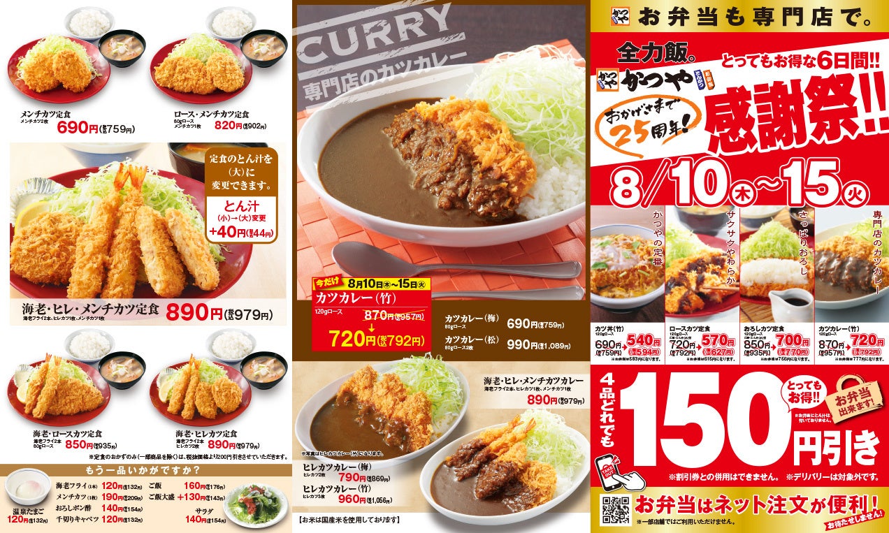 【おかげさまで25周年】とんかつ専門店「かつや」4品どれでも150円引き!とってもお得な6日間
