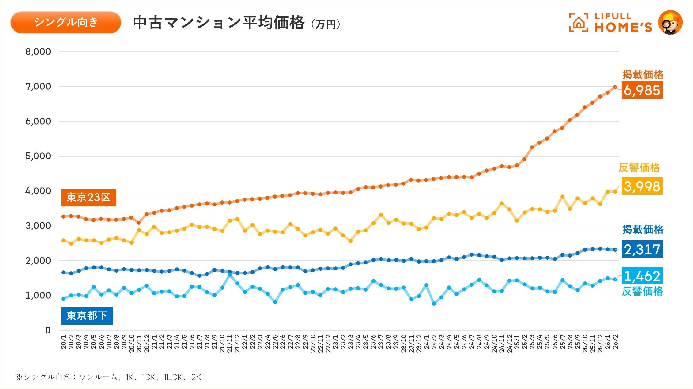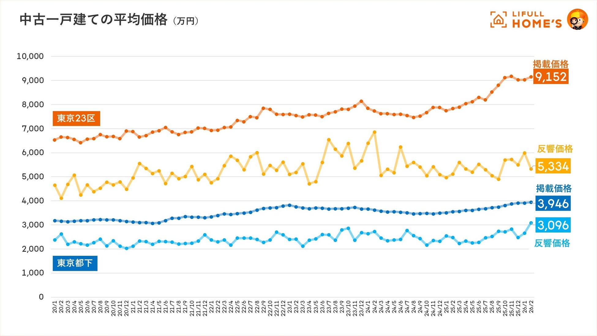 事業を通して社会課題解決に取り組む、株式会社LIFULL(本社:東京都千代田区、代表取締役社長:伊東祐司、東証プライム:2120)が運営する、不動産・住宅情報サービス「LIFULL HOME'S(ライフルホームズ)」は、「LIFULL HOME'Sマーケットレポート 2026年2月(価格動向)」を公開しました。