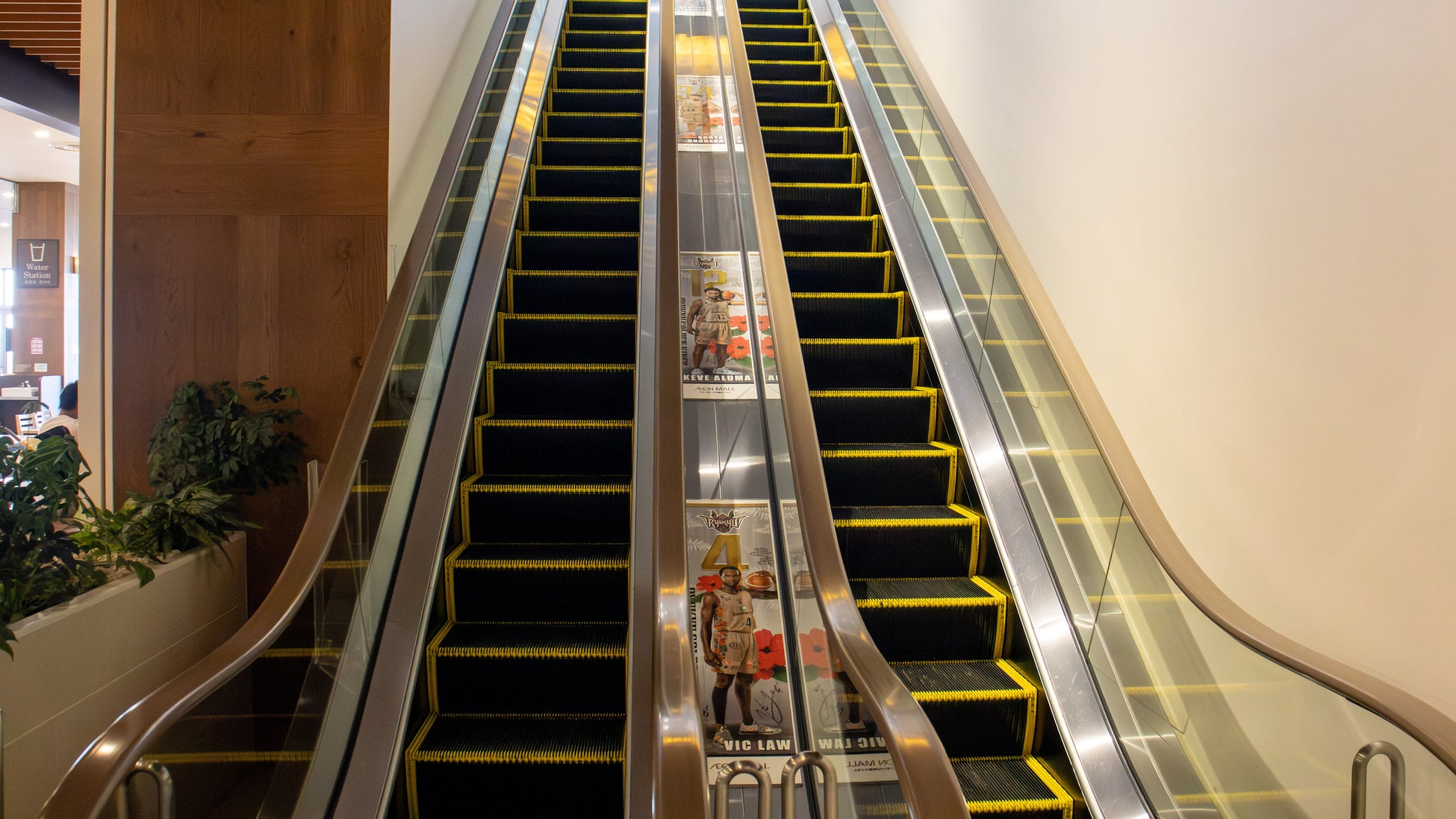 エレベーター横には選手サイン入りのバナー装飾が展示されています。
