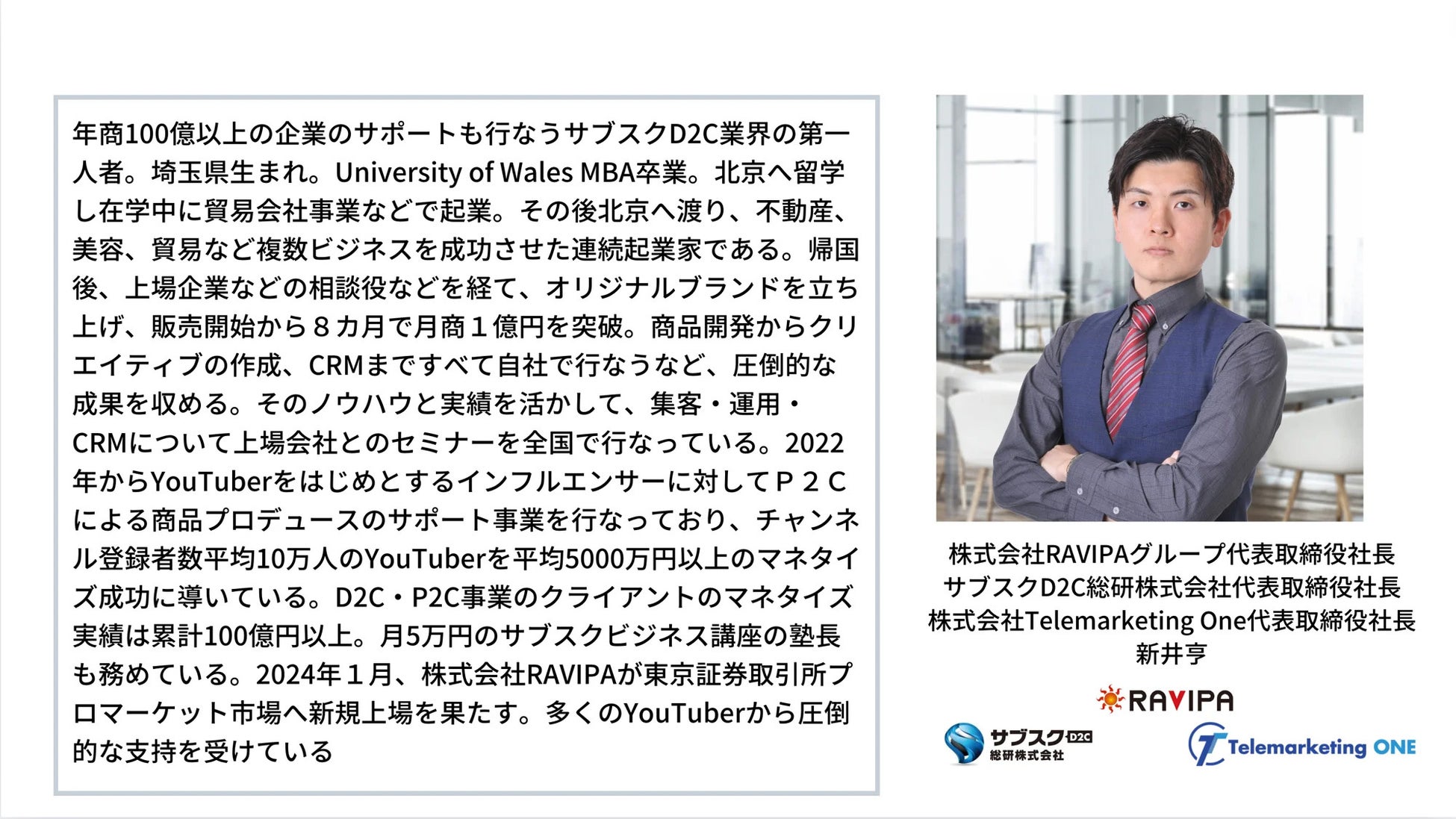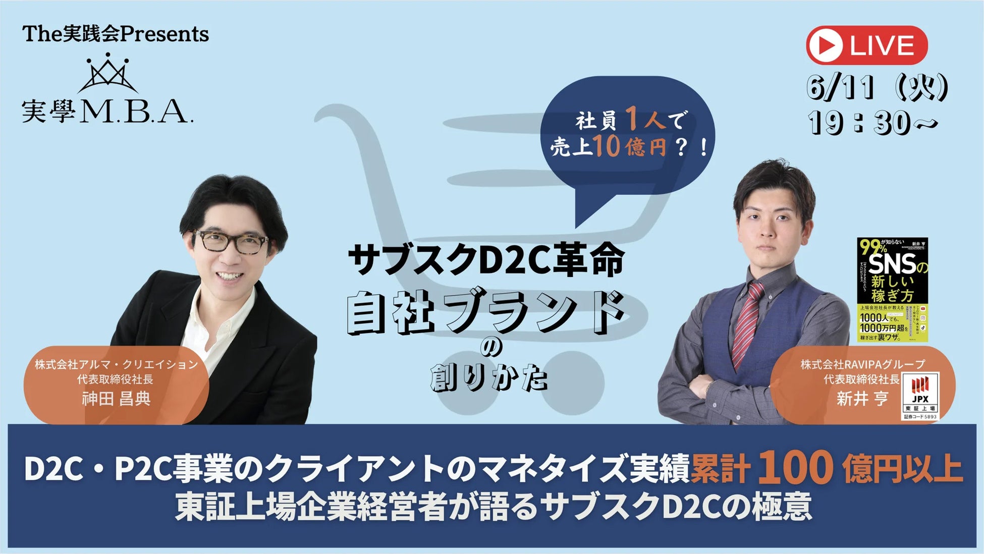 サブスクD2C(リピート通販)に関する基礎から最先端のノウハウまでを学ぶことができる、オンラインアカデミーの申込を受付中です。