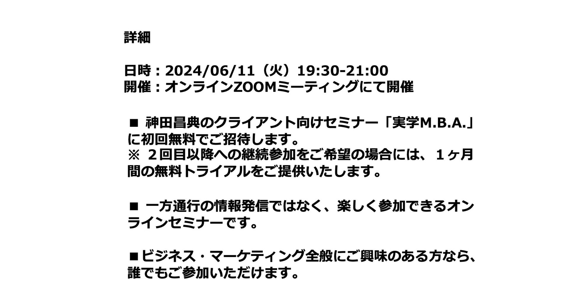 【初回無料】神田昌典のクライアント向けセミナー「実学M.B.A」に新井亨がゲスト出演|オンラインZOOMミーティング