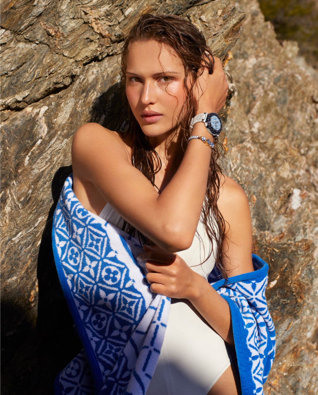 ルイ·ヴィトンは、「LV バイ·ザ·プール」コレクションより、メゾンのモノグラム·フラワー タイル パターンなどをあしらったビーチアイテムを発売しました。