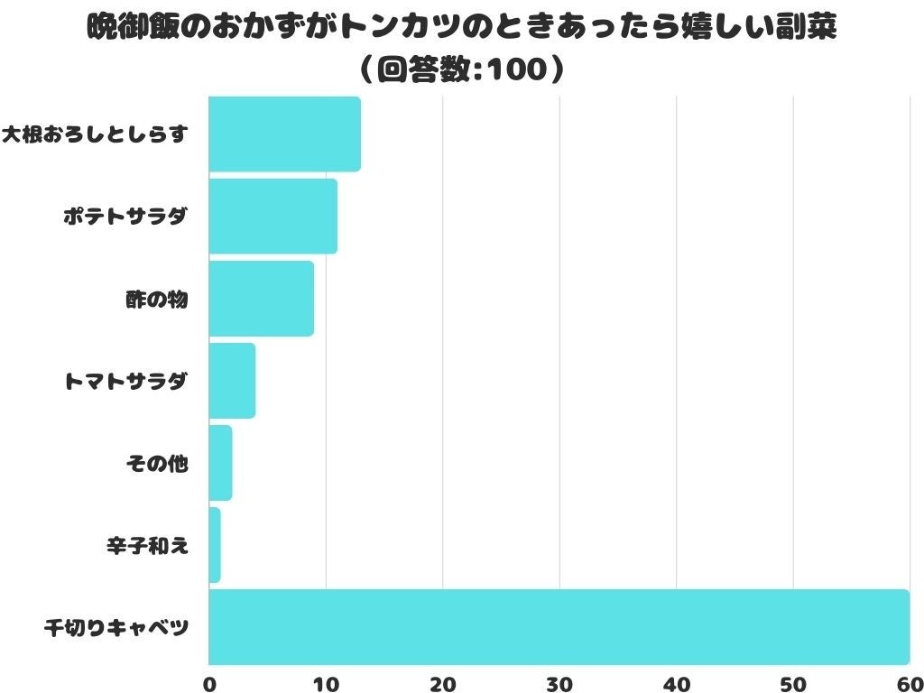 晩御飯のおかずがトンカツで副菜に何があったら嬉しい?をアンケートにて調査したところ、1位は「千切りキャベツ」でした。