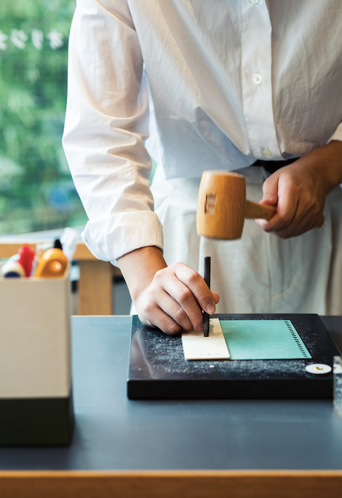 店舗では最短1冊15分、オンラインではオーダー後3日~1週間後のお届け。“ただのノート。だけど、世界に一冊だけのノートが、あなたのクリエイティブを刺激します。”