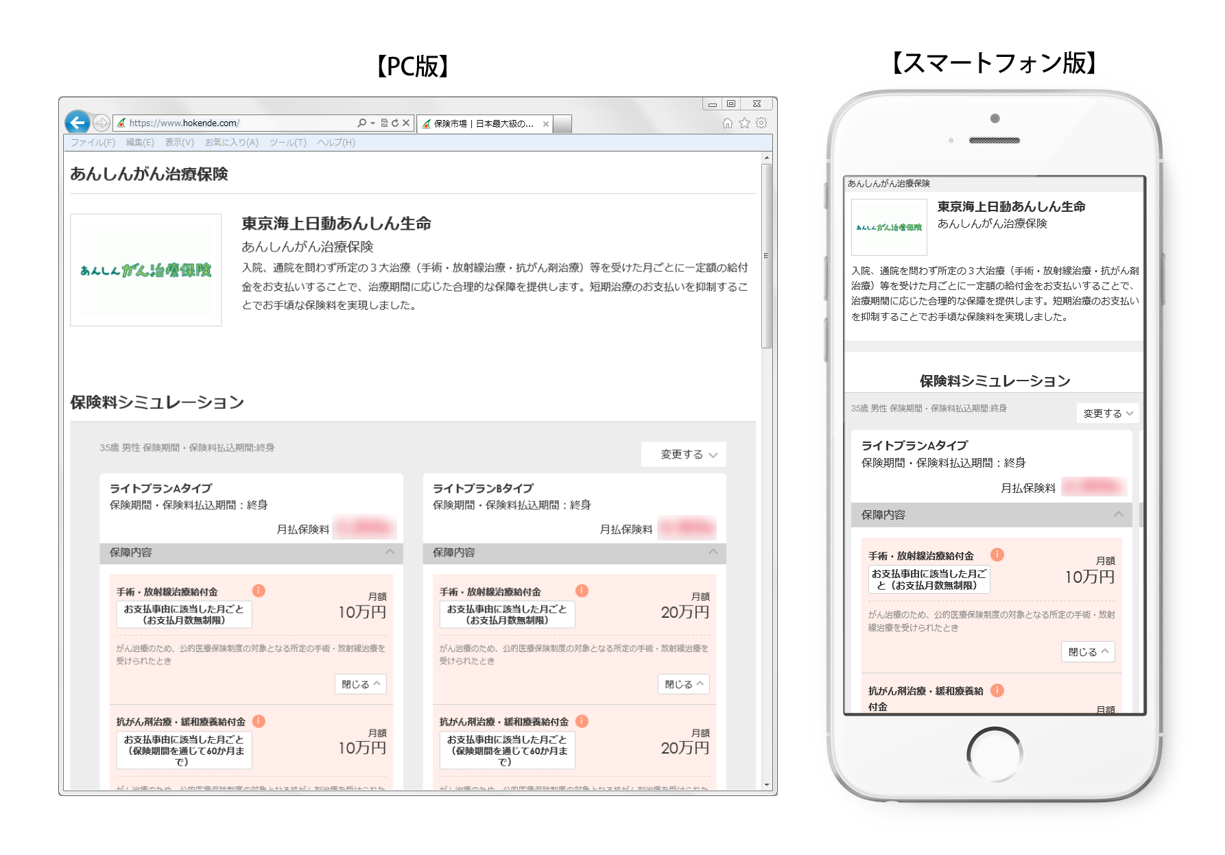 保険選びサイト「保険市場」に掲載を開始した東京海上日動あんしん生命の『あんしんがん治療保険』は、通信販売・対面販売でお申し込みいただける保険商品です。「保険市場」PCサイトおよびスマートフォンサイトにて、商品の詳細をご確認いただけます。