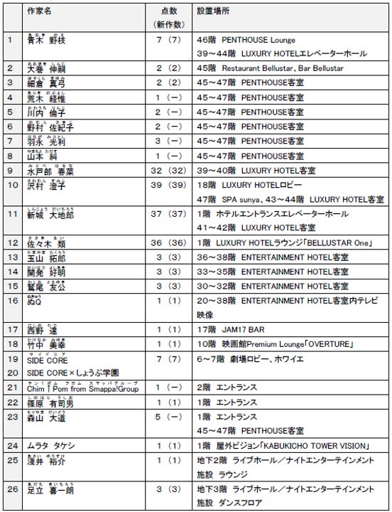 国内最大級*のホテル×エンタメ施設からなる「東急歌舞伎町タワー」全26組の作家による大規模アートプロジェクトの詳細を発表!