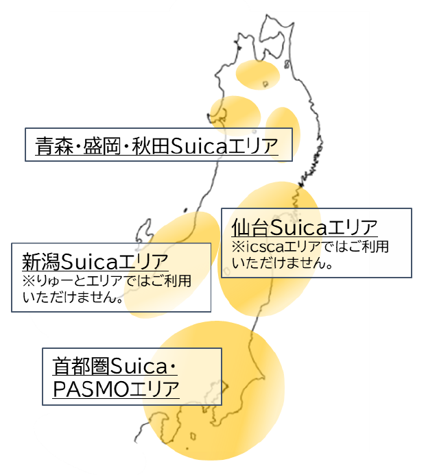 ※SuicaまたはPASMOの障がい者用ICカードを、Suica・PASMO(鉄道・バス)以外の全国相互利用エリアでお使いいただくことはできません。