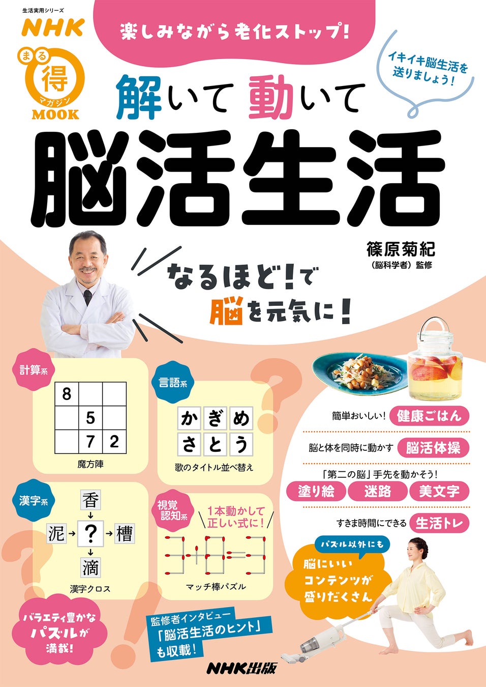 バリエーション豊富な脳トレクイズや健康体操で、脳も体もずっとイキイキ! 『NHKまる得マガジンMOOK 楽しみながら老化ストップ! 解いて動いて 脳活生活』が12月25日(月)発売!