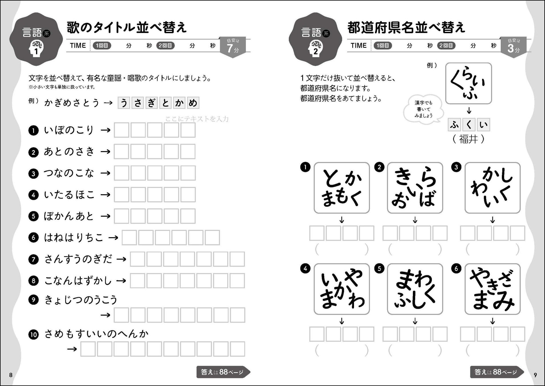 (言語系/計算系/漢字系/論理・推理系/視覚認知系/ワーキングメモリ系/MIX編/脳活ワークの答え+なつかしクイズ)