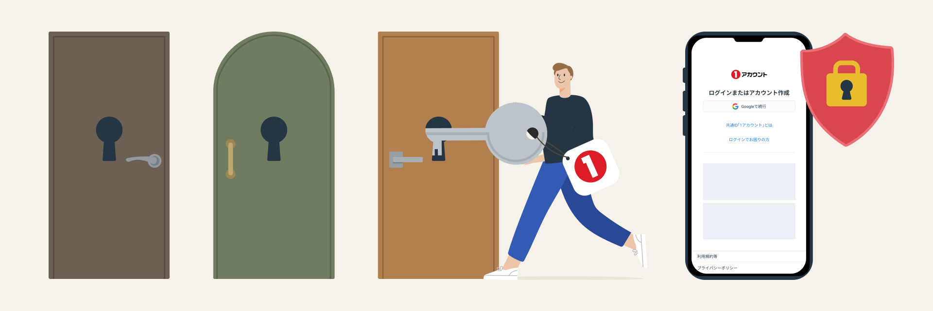 「1アカウント」ではGoogleログイン認証を採用し、高い安全性を確保しています。「1アカウント」独自のパスワードを設定する必要がなく、普段お使いのGoogleアカウントで安全にログインが可能です。