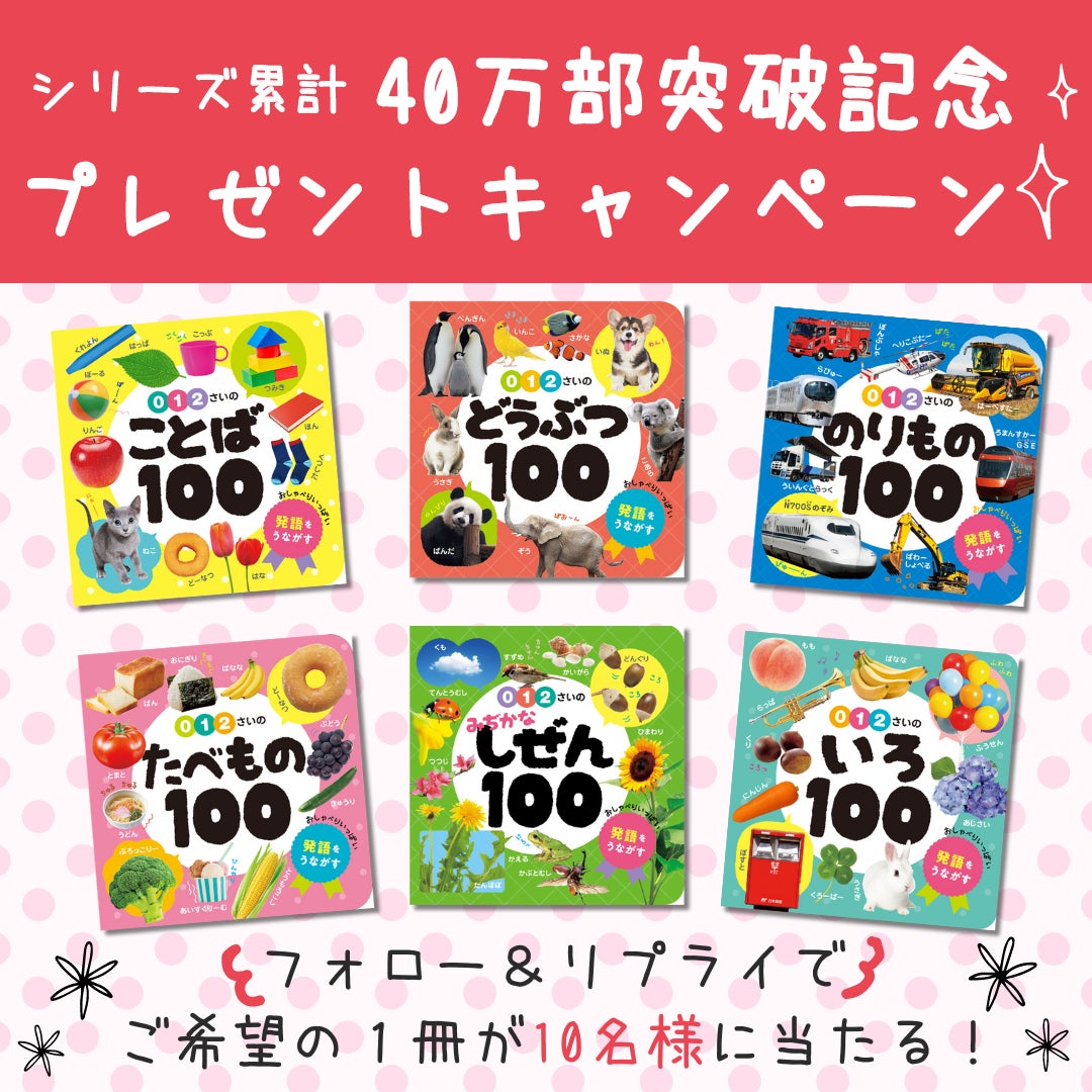 0・1・2さいのお子さんが最初に覚えたい100のことばを、大きな写真で紹介した「あかちゃんのずかん100」シリーズ。このたび、シリーズの既刊にも重版がかかり、『0・1・2さいの ことば100』と『0・1・2さいの どうぶつ100』がそれぞれ累計10万部を突破! シリーズ全体の累計は40万部となりました。