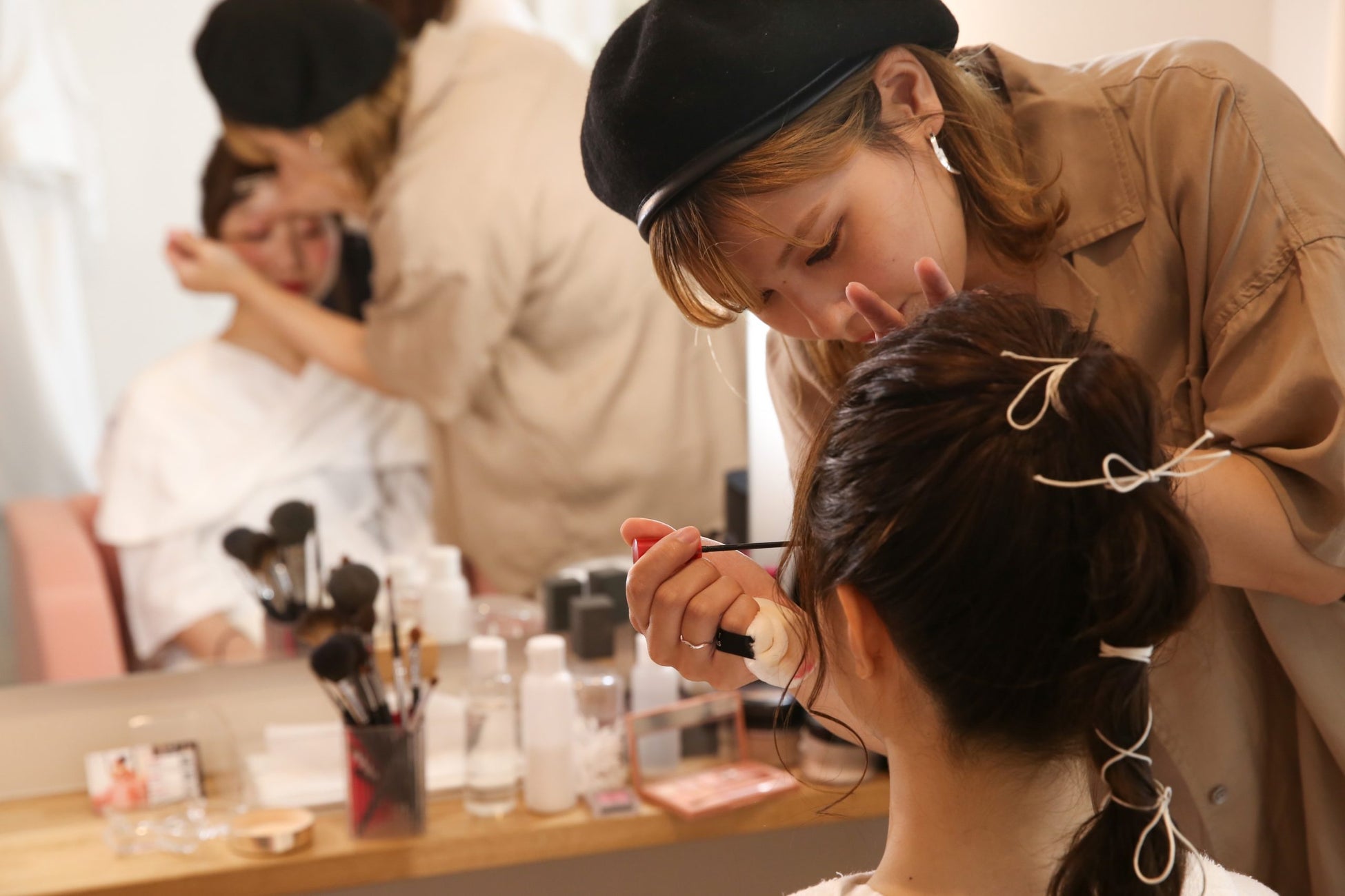 ブライダル専任のヘアメイクが会場に同行するので、本格ヘアメイクを体験することができます。