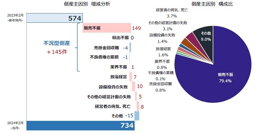 企業倒産は734件、22カ月連続で前年同月を上回る 2月としては過去10年で最多 ― 全国企業倒産集計2024年2月報
