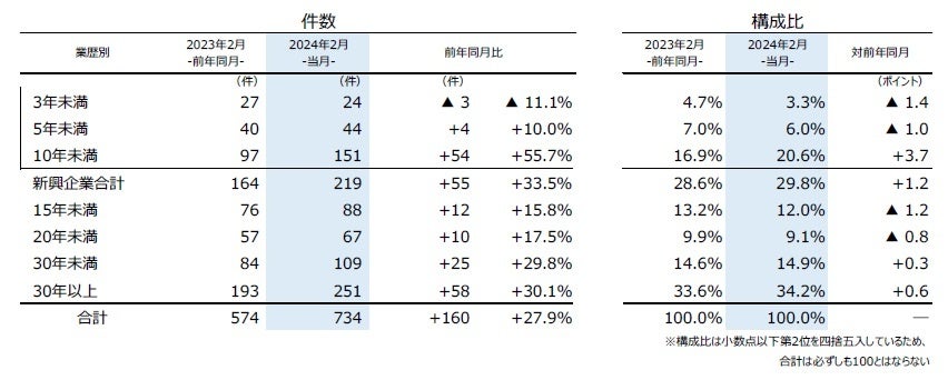 業歴「30年以上」が最多 『新興企業』は24カ月連続で前年同月を上回る