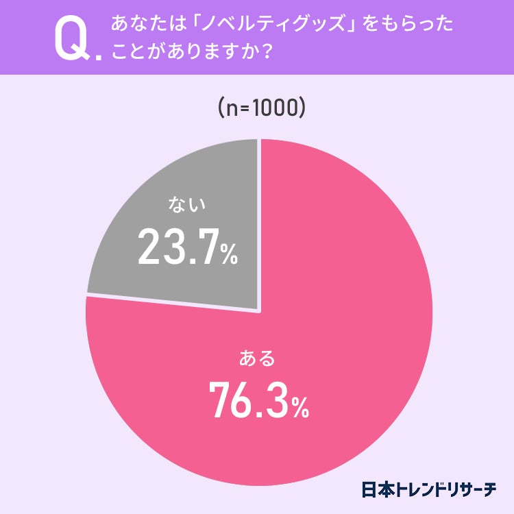 76.3%の方が、ノベルティグッズをもらった経験があると答えました。