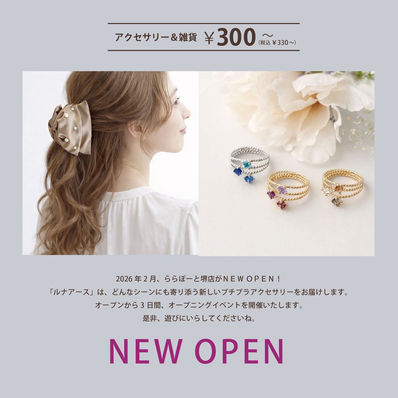 2/27(金)330円(税込)からのプチプラアクセサリーブランド「LUNA EARTH」 ららぽーと堺店がオープン