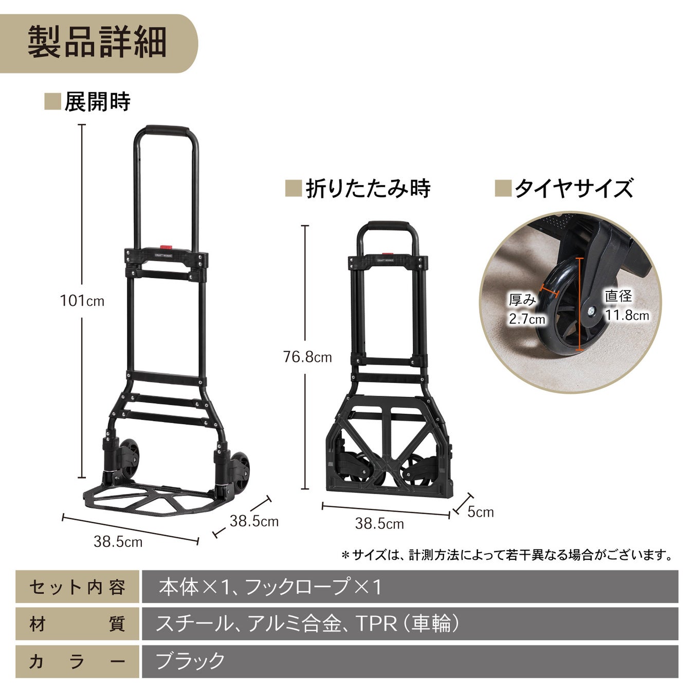 折りたたみ時:76.8cm × 38.5cm × 5cm