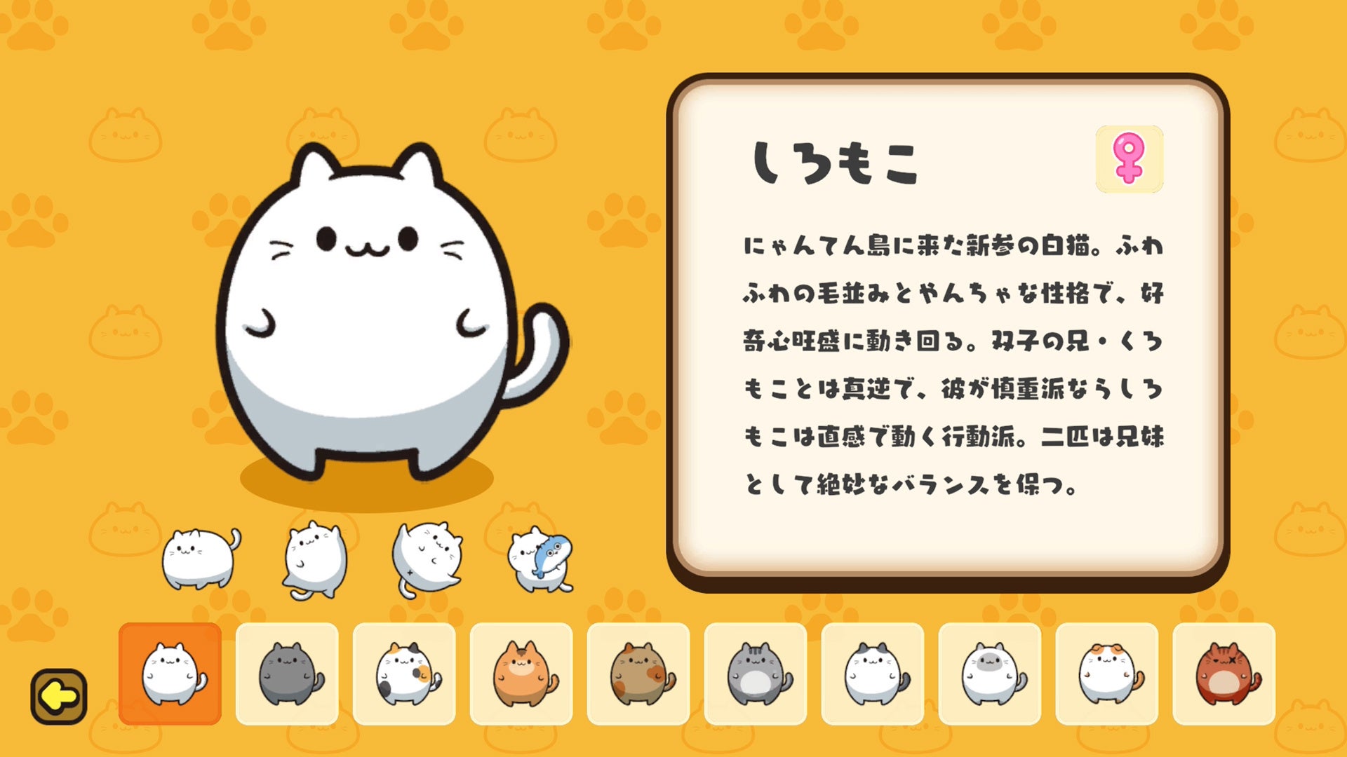 にゃんてん島に住む10匹の魅力的なぷにゃんたちの情報が見られる図鑑機能です。