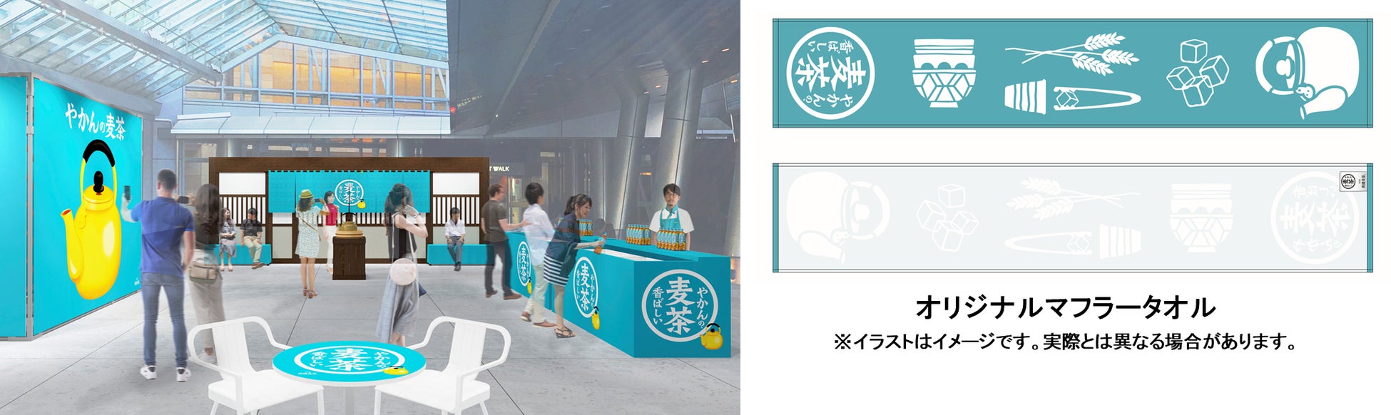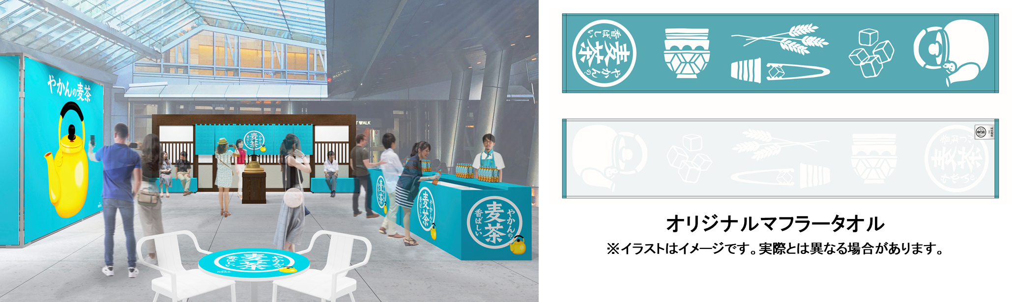 「やかんの麦茶」の“ゴクゴク”飲めるおいしさを体験できる「やかんの麦茶ゴクゴク体験イベント」を7月4日(火)、5日(水)の2日間六本木で開催します。TVCMにも登場する“やかんの麦茶屋”をイメージした会場で、炎天下で過ごす皆さんにキンキンに冷えた「やかんの麦茶」を無料で配布します。当日、イベントの様子をSNS投稿してくれた方には、「やかんの麦茶」オリジナルマフラータオルをプレゼント(先着順)。「やかんの麦茶」を“ゴクゴク”飲んで、暑い夏を乗り切りましょう!