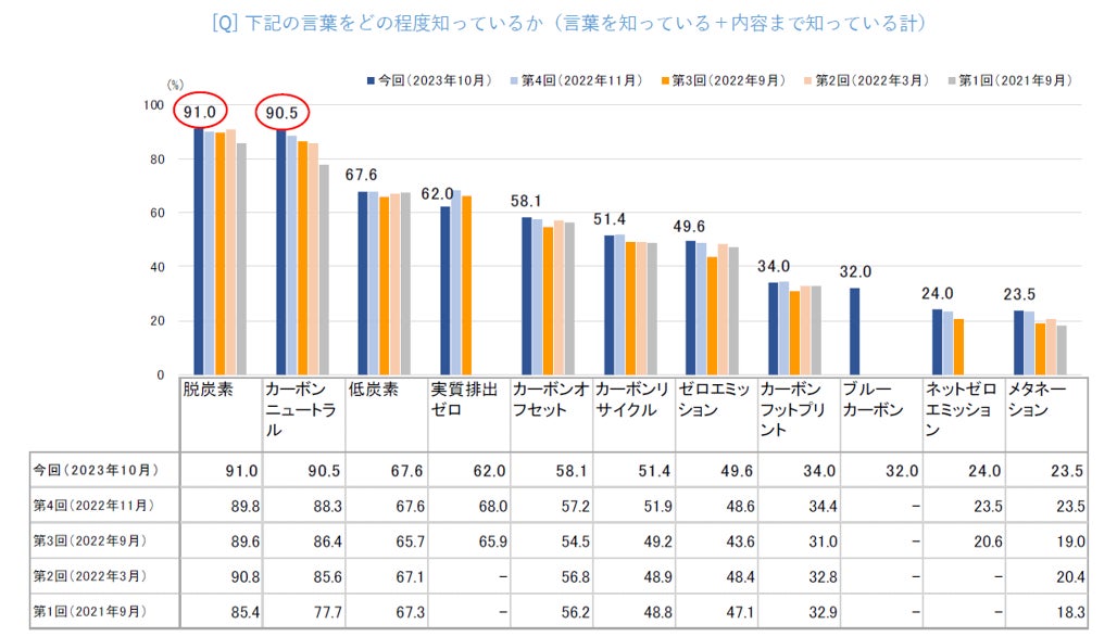 ■「脱炭素」や「カーボンニュートラル」の認知は9割超えに。「ブルーカーボン」は3割