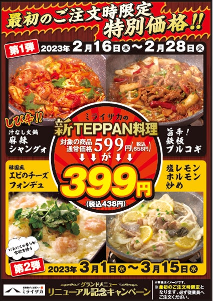 「ミライザカ」グランドメニューリニューアル!新TEPPAN料理キャンペーン開催